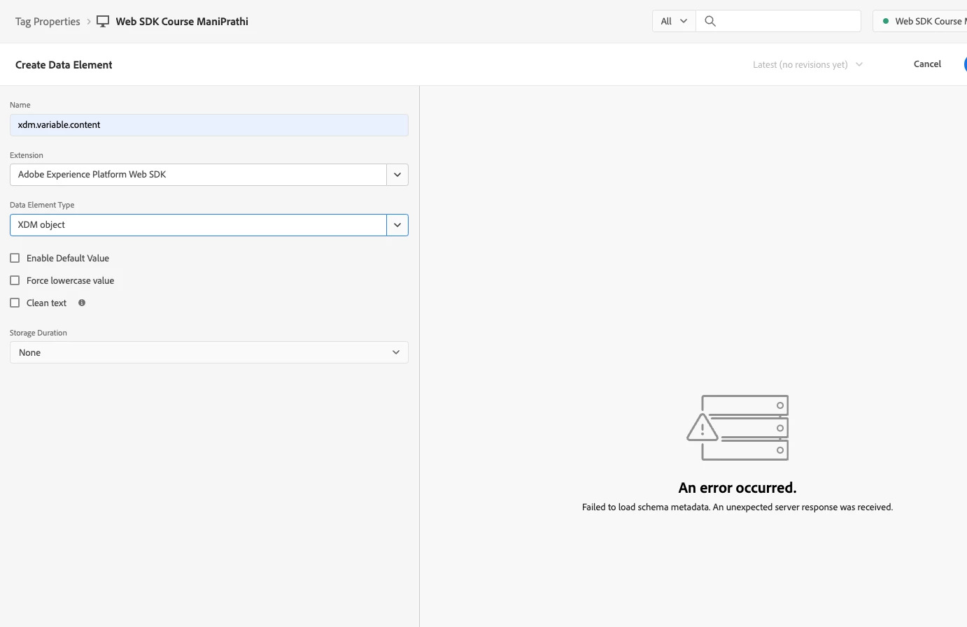 I am not having the permission to use the "Adobe Experience Platform Web SDK" extension and Data Element Type "XDM Object" which trying to create the data element.