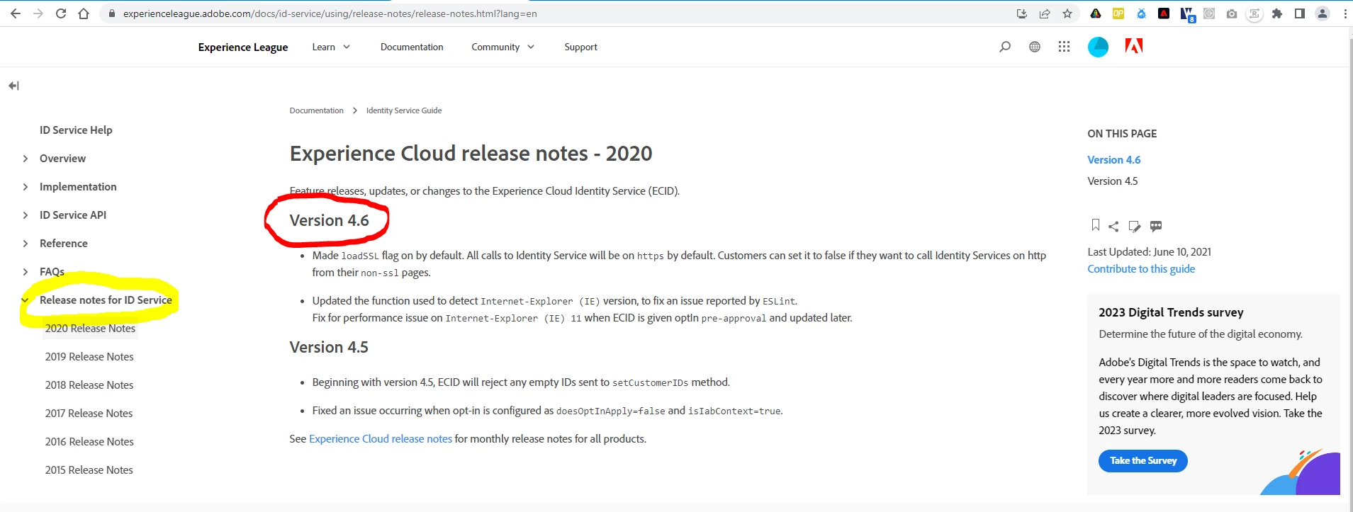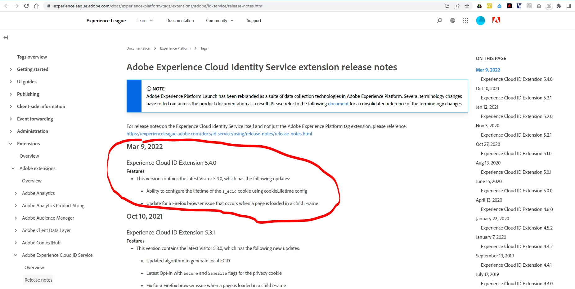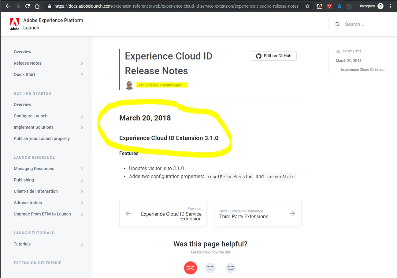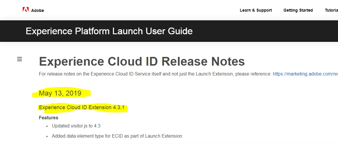 Today 04/09/2019, I noticed that there is a new v.4.1.0 version of the Experience Cloud ID Service extension for upgrade. Before doing an upgrade, I want to read the extension's release notes.