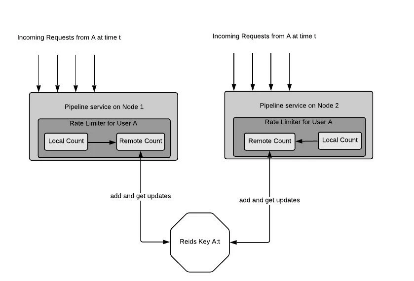 While designing the rate limit architecture, we had to compromise on what we wanted to achieve. We want accuracy without impacting latency which is virtually impossible which is like in the computer architecture "When multiple threads are adding values to a counter, give me a perfect result of the add without synchronizing" which is impossible to do. We have a similar situation where we want to get an absolute count of all the requests across the nodes in a cluster in real-time without blocking the incoming requests. So, our goal is not to attain an accurate count across a cluster, rather achieve no impact in latency with an acceptable margin of error of accuracy of around 20-30%. It means our rate limit result can be off by that margin which is acceptable for us given we don't add any latency to the APIs.