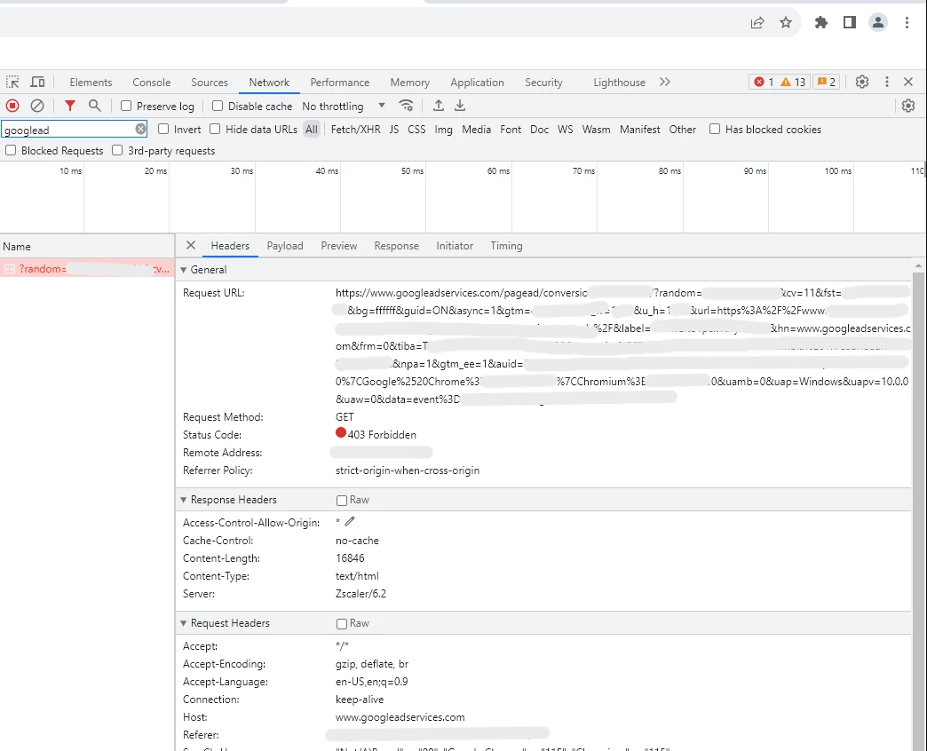 Sending conversion data to Google Ads from Adobe launch - getting 403 error