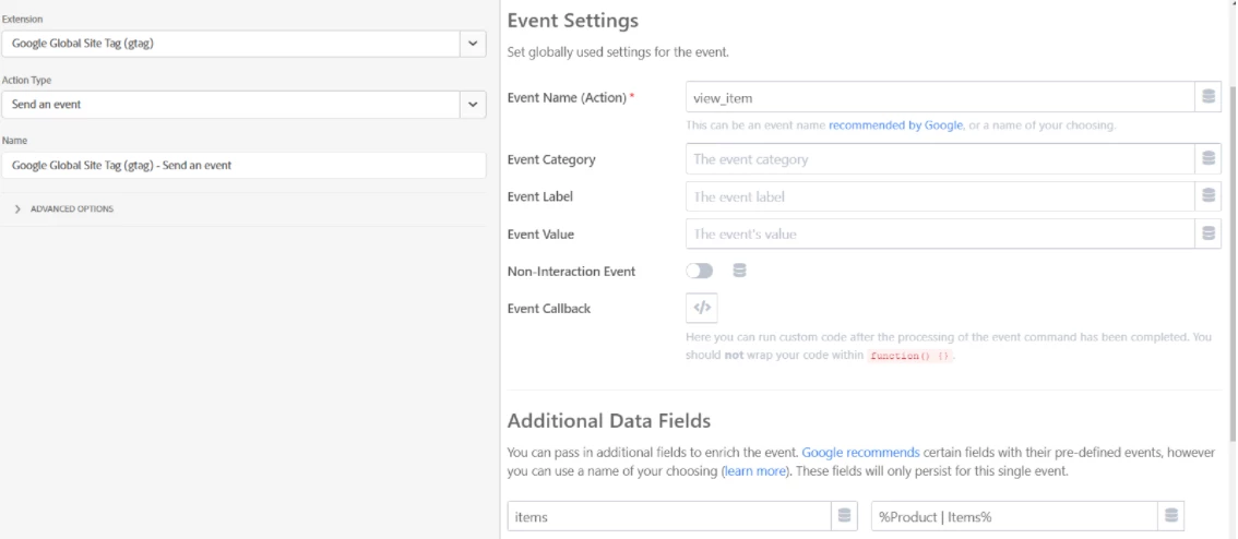And then, from my rule, I use the gtag extension to send the data to Google Analytics.
