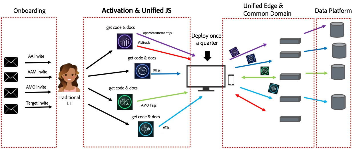 Currently, Adobe Experience Platform customers need to implement multiple JavaScript libraries on their website to interact with services within Adobe Experience Cloud. Each library has its own documentation and must be implemented individually, resulting in a complex workflow.