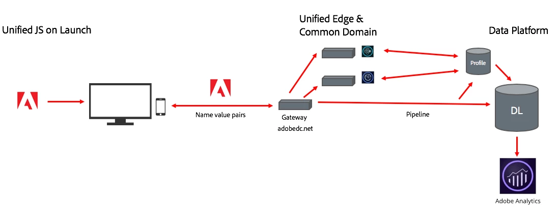 In the current implementation, each library sends a server call to a separate endpoint before the data reaches Adobe Experience Cloud solutions.