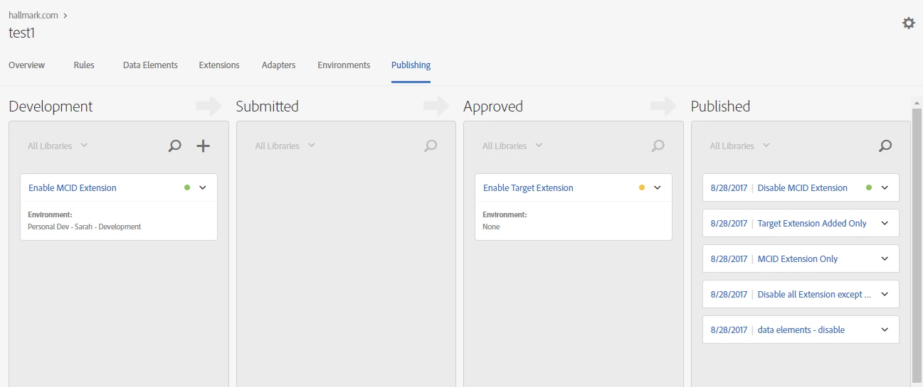 4) I made a build of only the Target extension to the stage environment