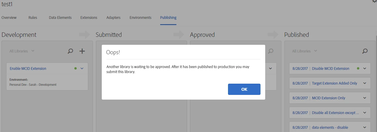 Screen Shot 2 :: Message shown when I try to Submit for Approval (to stage)