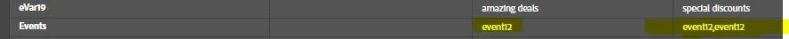 If you see the below screenshot, you see event12 once for the first eVar "amazing deals" but when I click on the next carousel, event12 is shown twice? Any particular reason why event12 would fire twice on the second click.