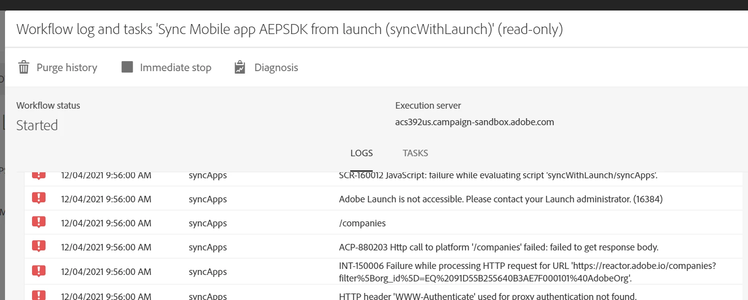 I am trying to send push notifications via ACS , for which we need to see the apps or properties created in launch in AEP SDK of ACS but the technical workflow which runs to sync the app in ACS is showing error (attached ss), no idea how to resolve this??