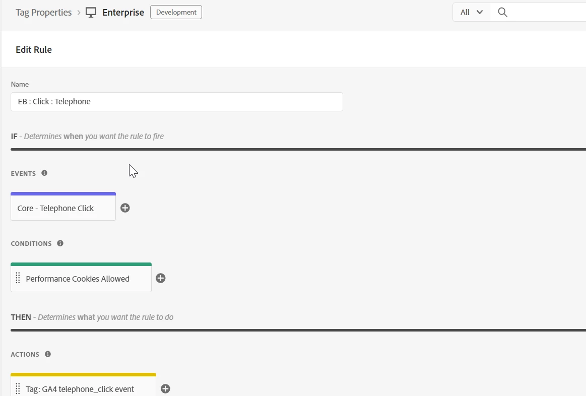 This is the script inside of the action 'Tag: GA4 telephone_click event'