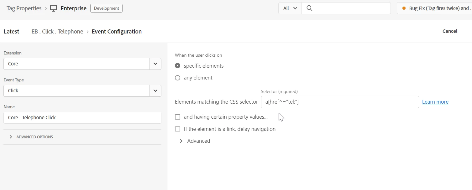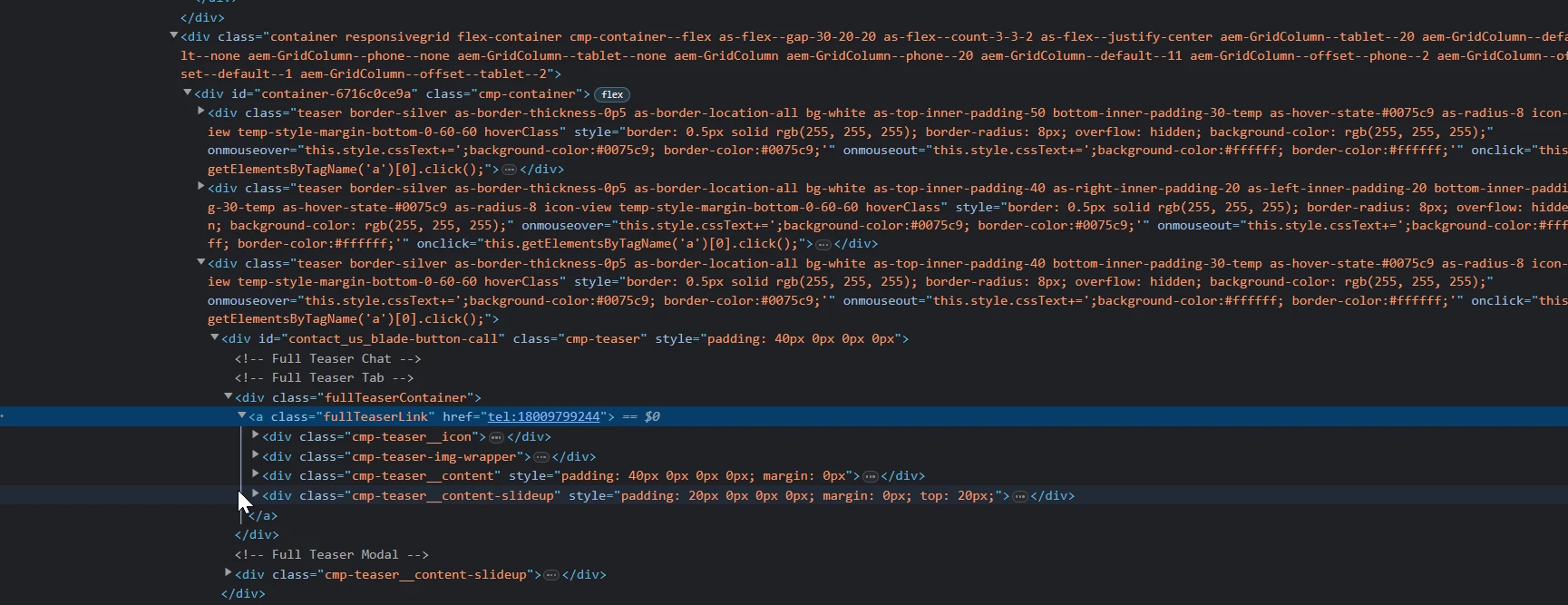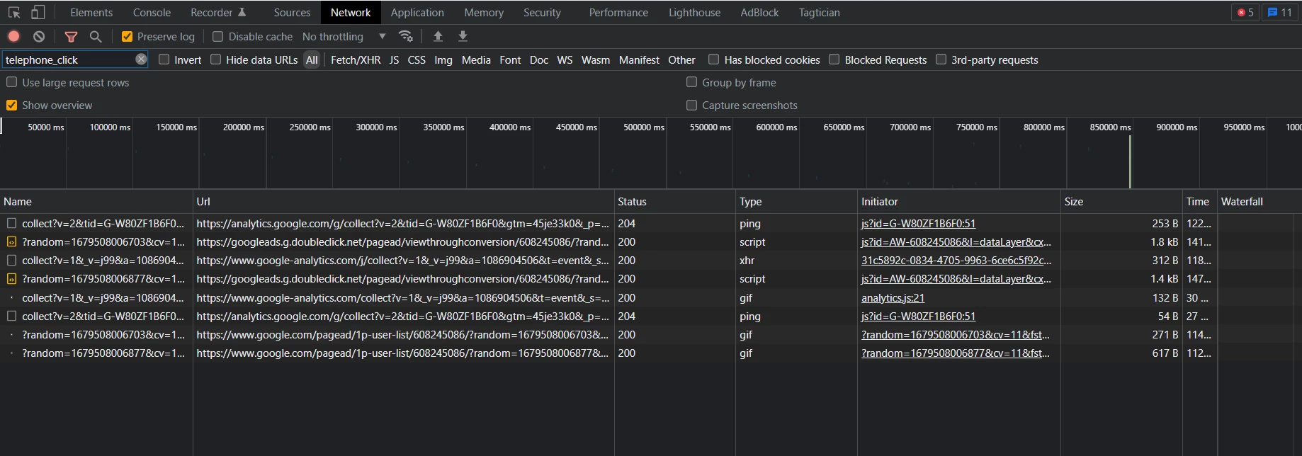 When I check the network requests and data layer however.. I see the 'telephone_click' event two times. I don't know why this is happening. I'm also including a picture of the html code for an example of an item I'd be clicking.