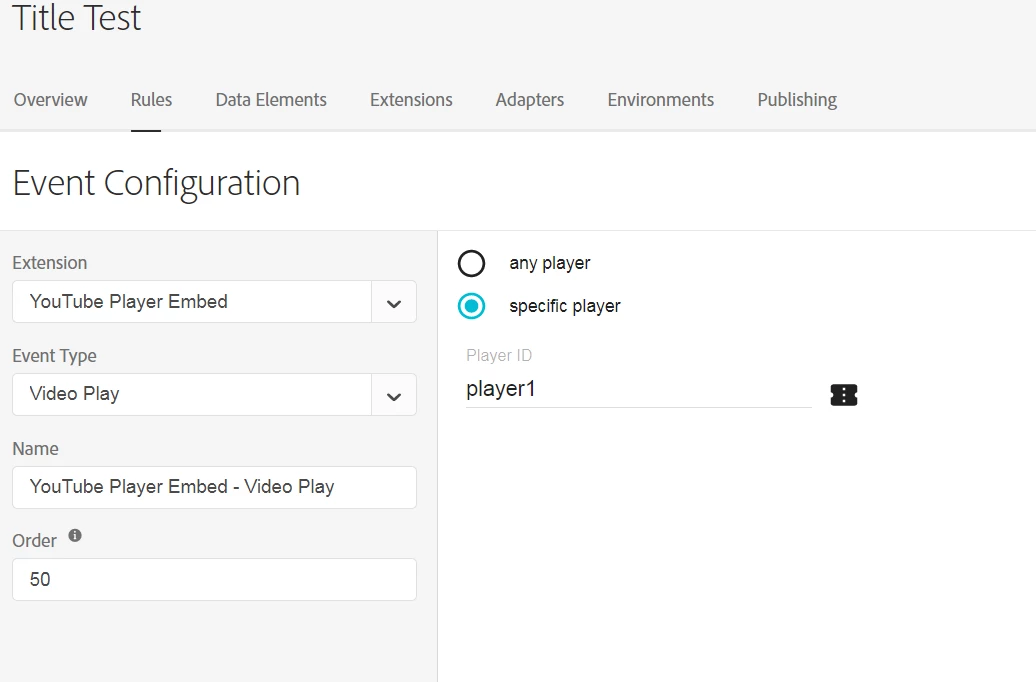 I'd like to track video events on a YouTube video I have embedded on our site, and I'd like to do it through the YouTube Embed extension. So far I've set up the rule event like this, and I've added the appropriate Analytics variables and beacon call: