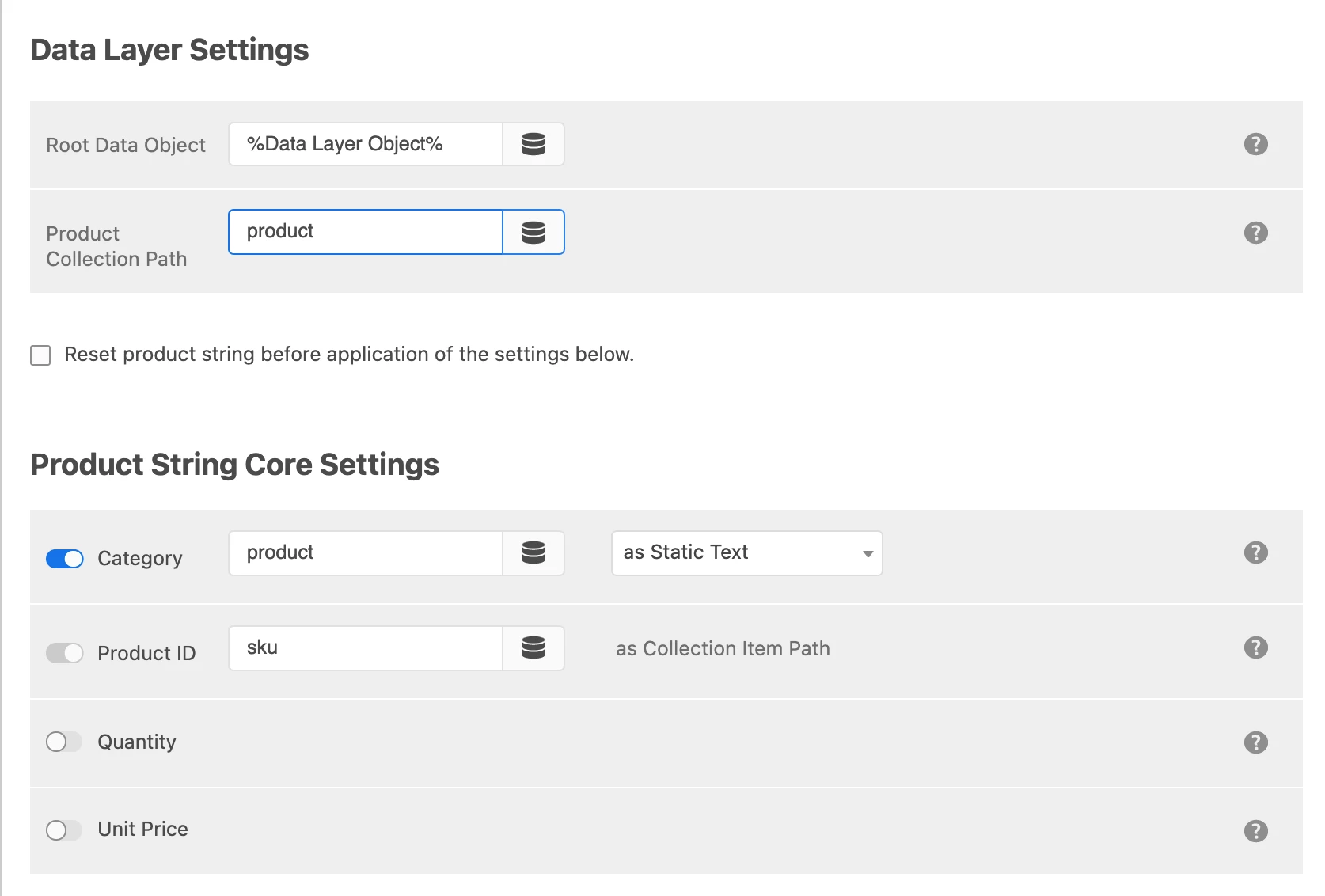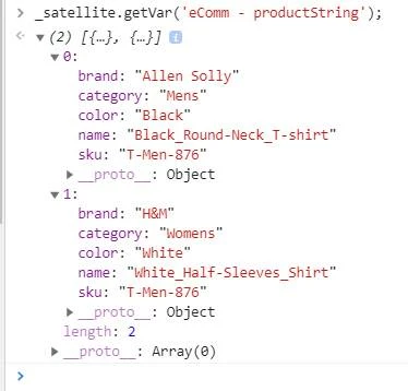 4. ‘Product collection path’ value passed by “eComm - productString” data elememt.