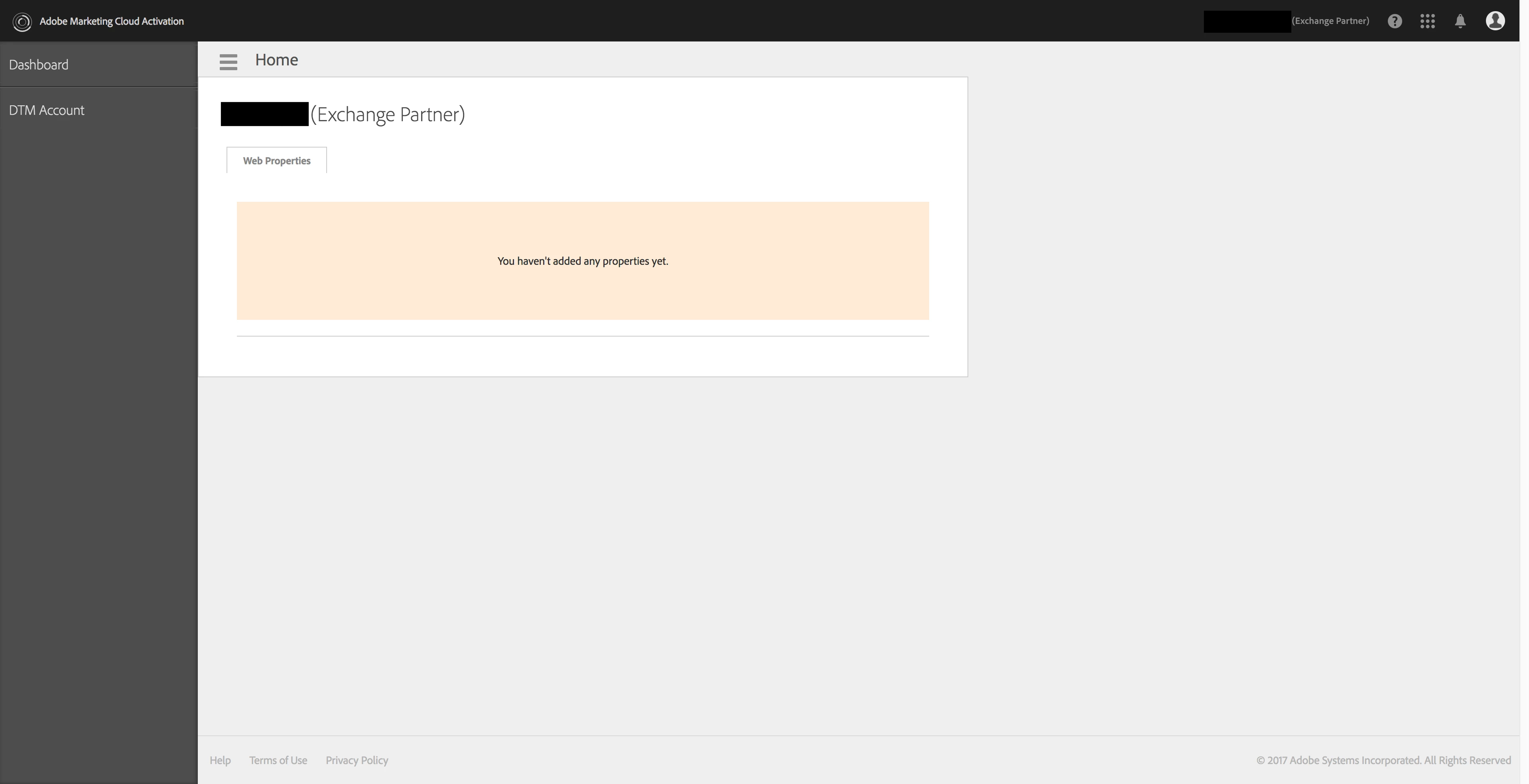 In your second screenshot, you can't see the users tab in DTM. This is likely because you aren't an Admin in DTM. This would also cause you to not be able to create the web property. In the first screenshot, I see that you belong to a few DTM groups with the name Admin on them, but that doesn't guarantee they are mapped correctly to the Admin permission.