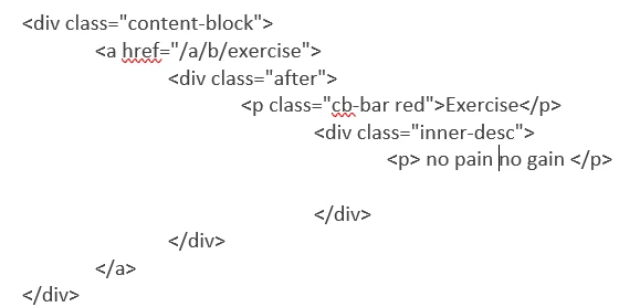 I am facing a problem where I am trying to extract the text out of a clickable event. In adobe DTM I have a CSS selector (.cb-bar red) for my on click event rule and I have a prop associated with that event to capture the text out of that clickable link. This is a piece of code for which I wanted to capture text Exercise for every click on exercise link before it navigates to its final page <"/a/b/exercise">