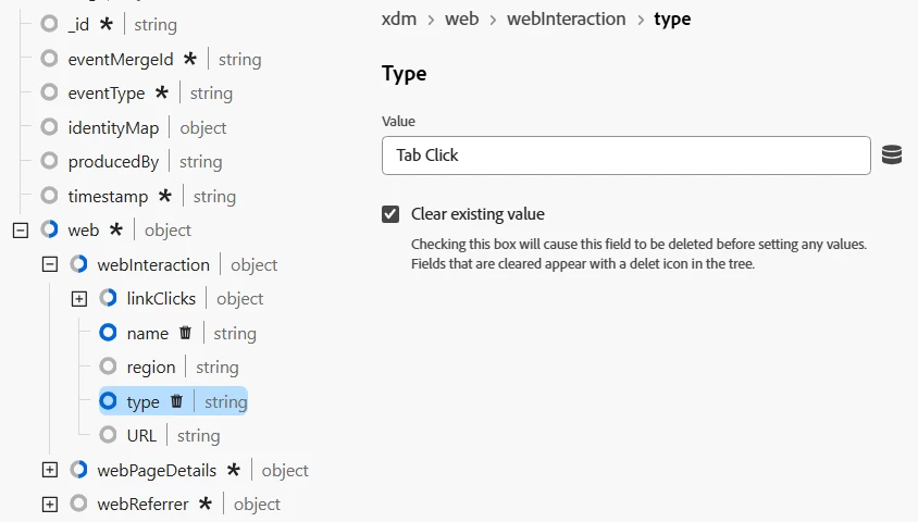 I just started a new project, and I noticed that the data ingestion is failing where all the error messages were related to enum values. For example, I got this error message: The message cannot be validated: [#/web/webInteraction/type: Tab Click is not a valid enum value]. I set this value directly in the Tags' Update Variable editor.