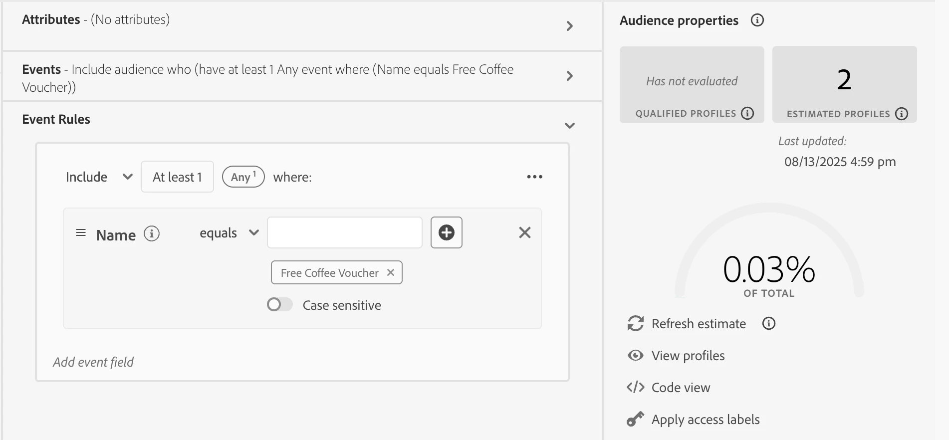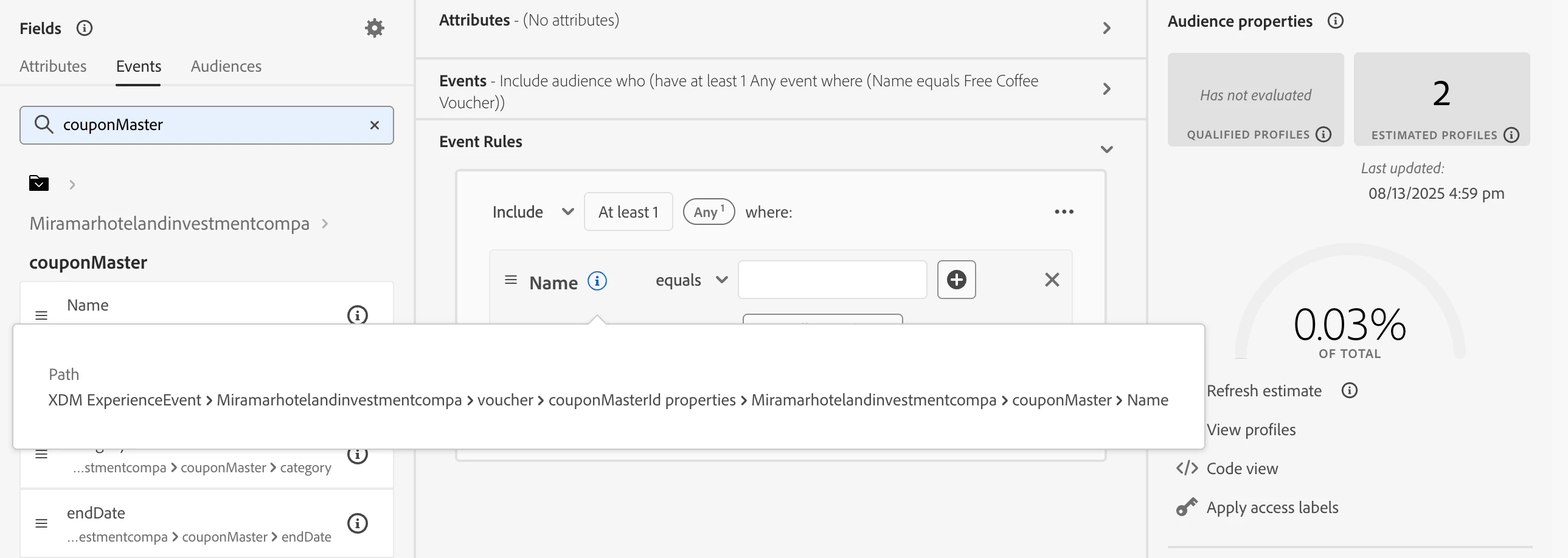 When creating a segment to target profiles who have used a specific coupon, I get the following results:
