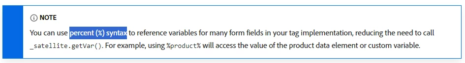 As per the document https://experienceleague.adobe.com/en/docs/experience-platform/tags/client-side/satellite-object we should be able to reference _satellite.getVar() in percent(%) syntax under UI.