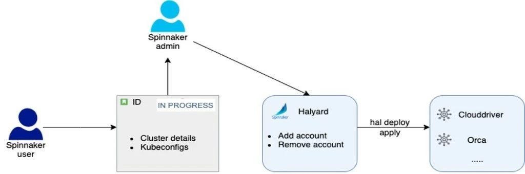 Even if we had to onboard a new cluster, remove an existing one or modify its details, a new Spinnaker deployment had to be performed. This was a tedious and time-consuming process that we had to address. Below is a short diagram of the old account onboarding process: