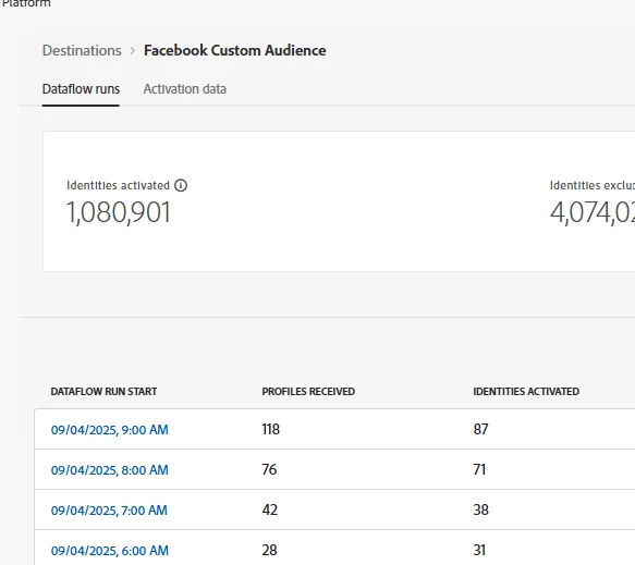 Our Facebook destination identities activate amount is facing decreasing as below, but we didn't change any FB destination config for segments config, and we can see there're still identities activate every hour. Then what's the reason it could be?