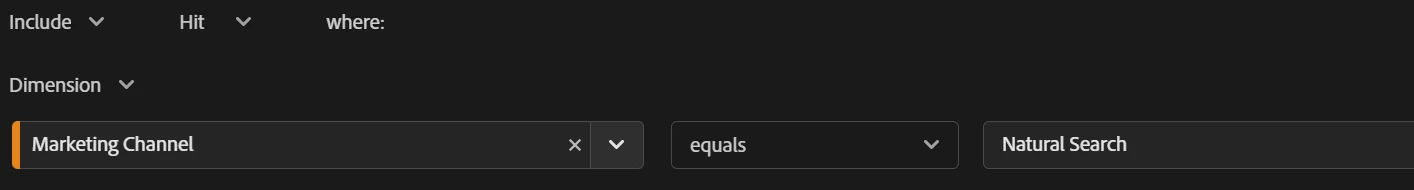 Marketing Channel equals "Natural Search".