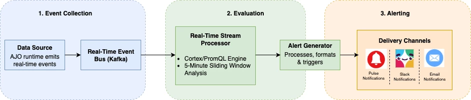 Delivery: Notifications are sent through standard AEP channels so teams can react quickly without needing to monitor dashboards: