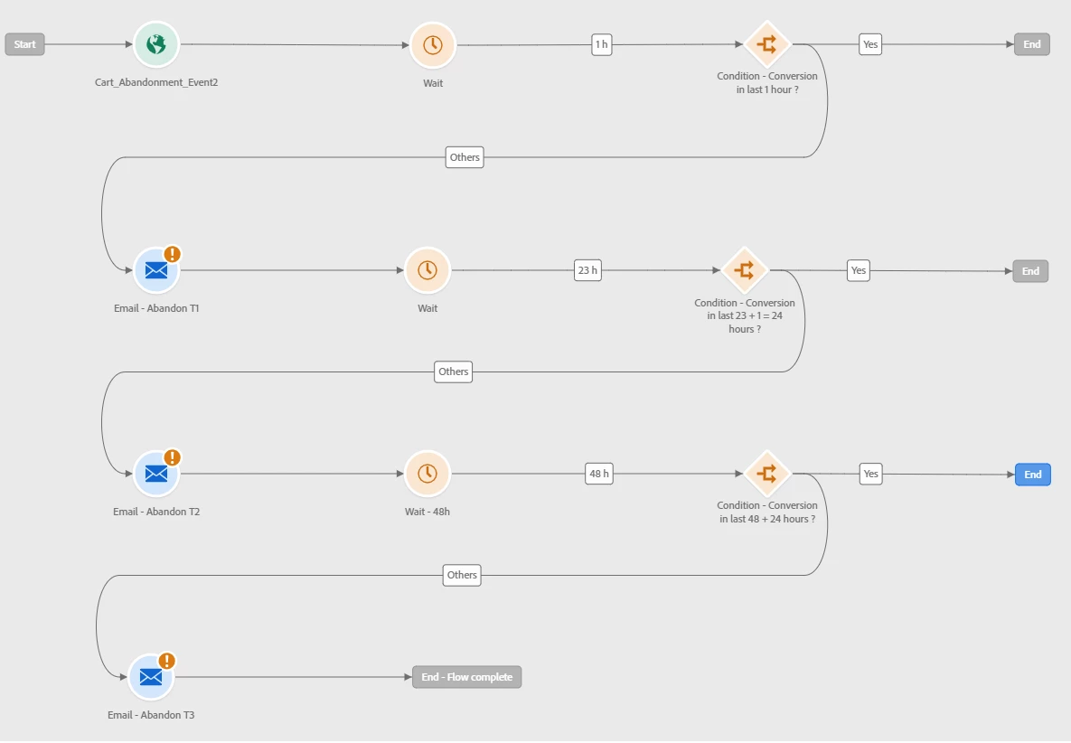 Hi, I'd like to create a Journey which start with an Unitary Event and after the trigger, add some waits which will take different actions, something like this