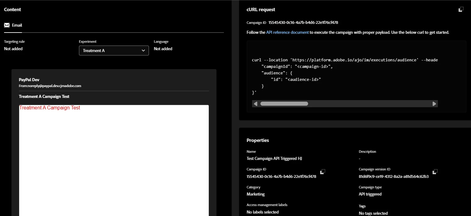 API Triggered Campaign not working with Content Experiment