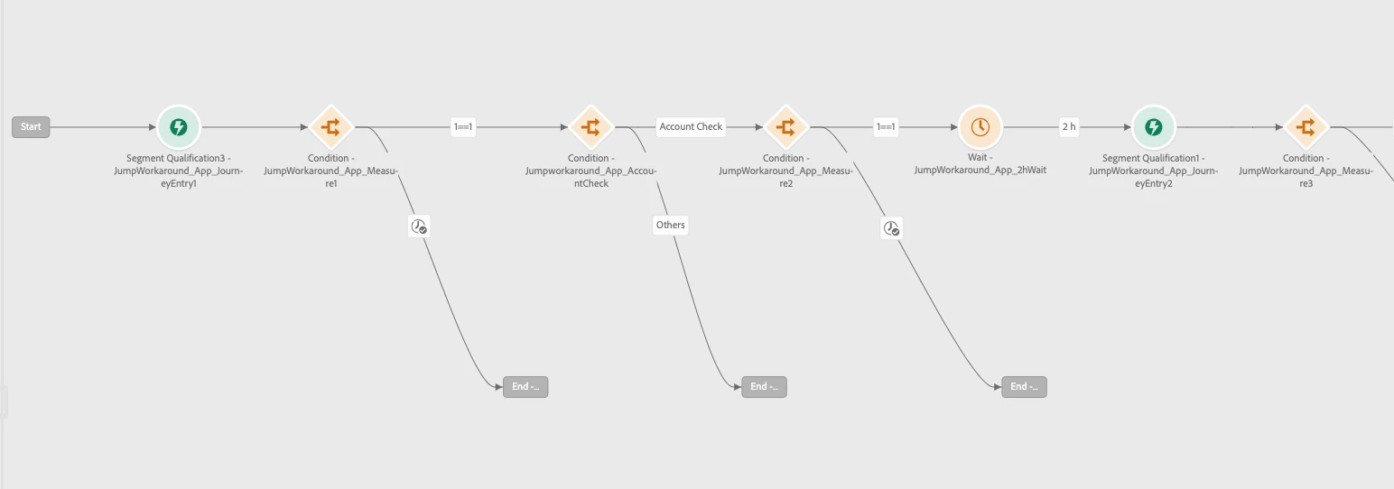 Because of the high number of members we create journeys for, we cannot use the "Jump" custom action (moving someone from one journey to another).