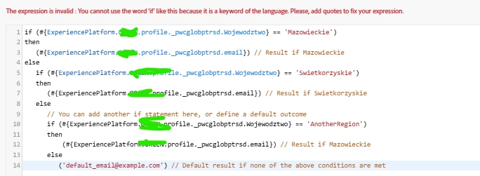 if (#{ExperiencePlatform.ProfileFieldGroup.profile.homeAddress.city} == 'Seattle') then