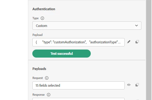 I am trying to make a third party API call via custom action. I added the required authentication details and the test authentication is successful as in the below screenshot. Below is the Authentication payload used