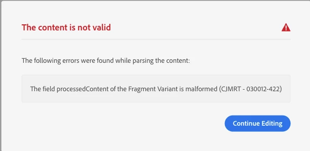 But when I try to save the fragment, I get the below error, but the same is working fine in the email template.