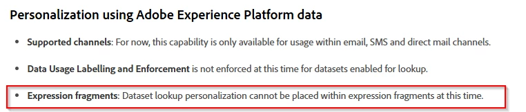 When I try to save a visual fragment with the dataset lookup function, it throws the below error but works fine in email templates.