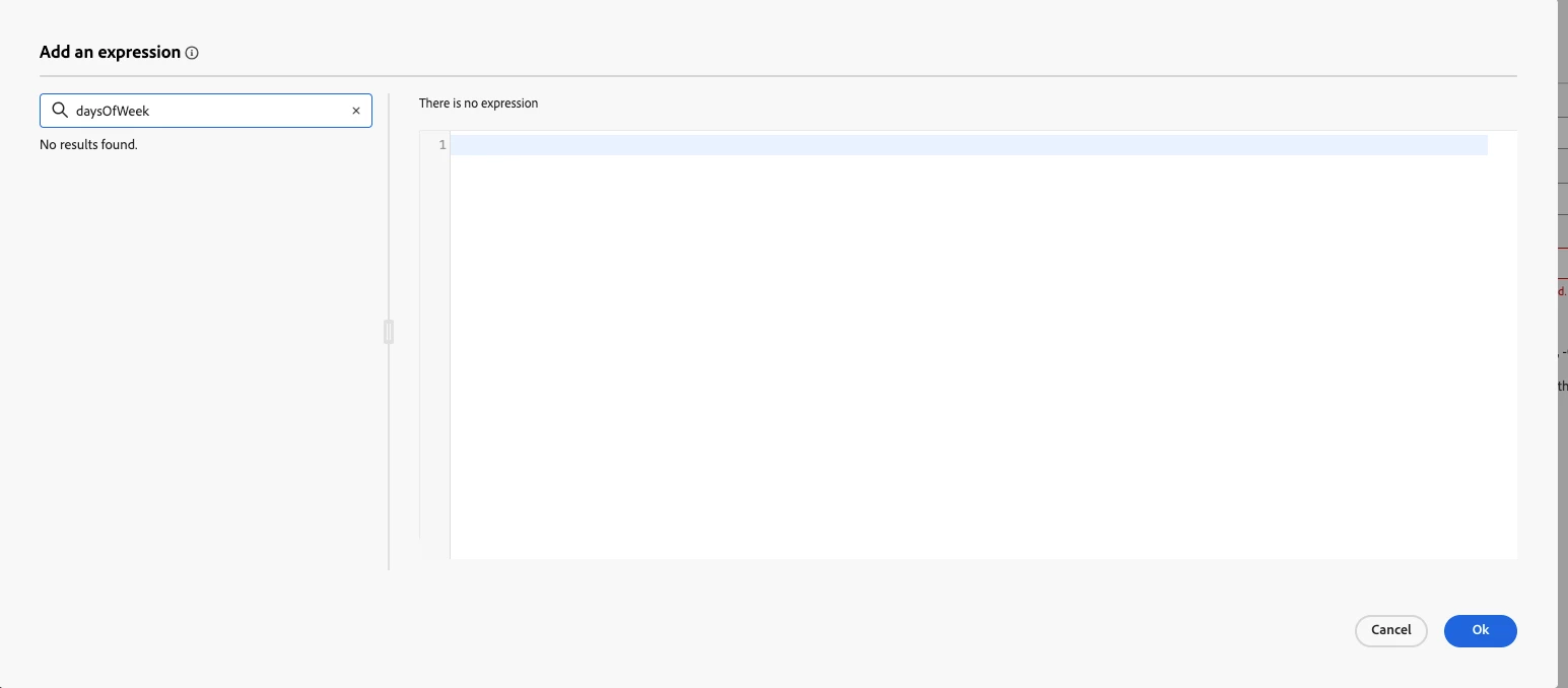 Day of the week through the Expressions section in AJO