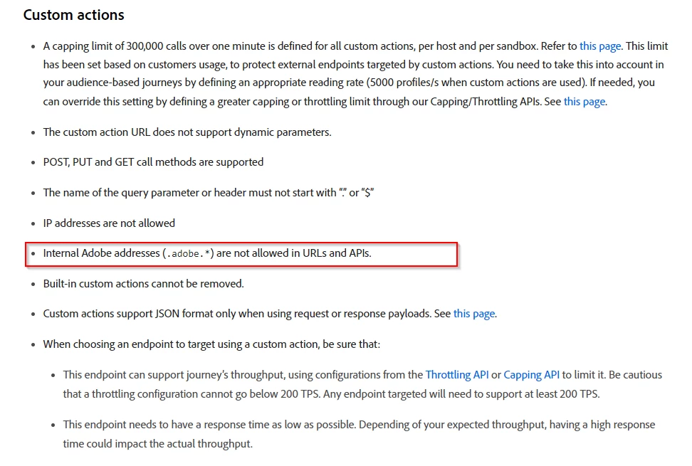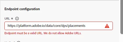 I am trying to develop a utility to sync the offers from one sandbox to the other through Offer APIs. We could retreive the offers from one sandbox in Postman but while trying to set it up in AJO, in the custom action URL, I entered the offer API and it gave the following error.