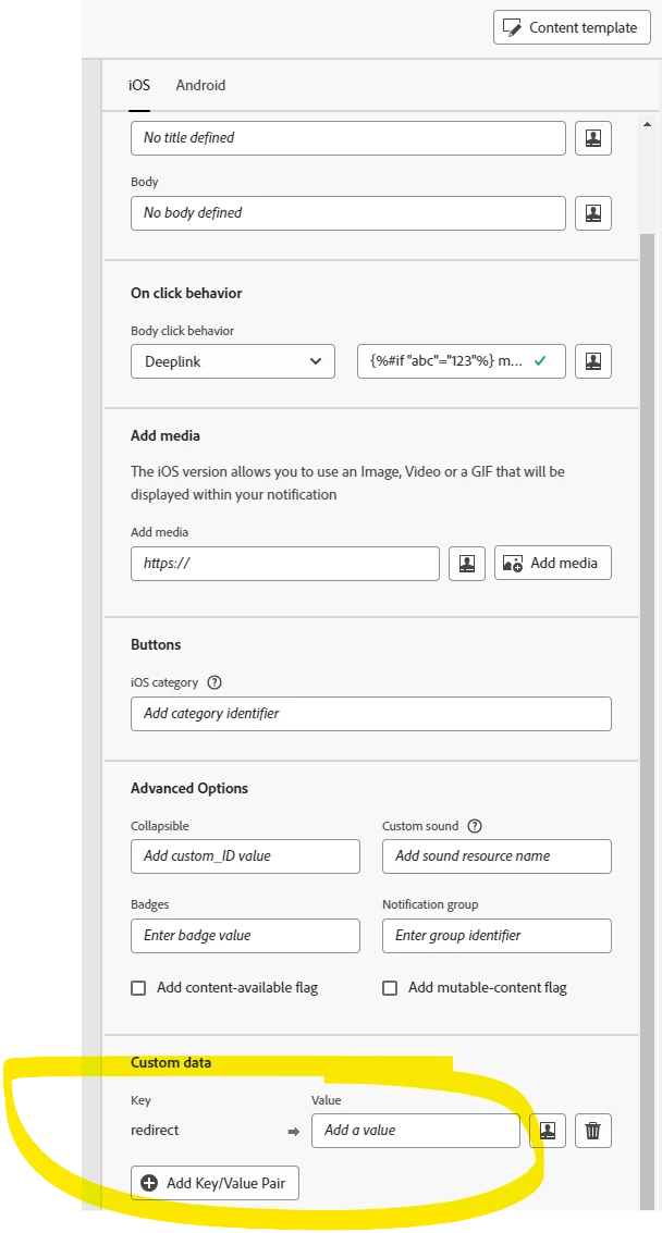 {%#if "abc"="123"%} myAppScheme://webview?redirect=https://www.google.com {%else if "aaa"="aaa"%} myAppScheme://webview?redirect=https://www.msn.com{%else%} myAppScheme://webview?redirect=https://www.yahoo.com{%/if%}