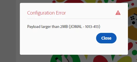Payload size for the upload in Adobe Journey Optimizer (AJO) is exceeding the maximum limit, which is 2MB.