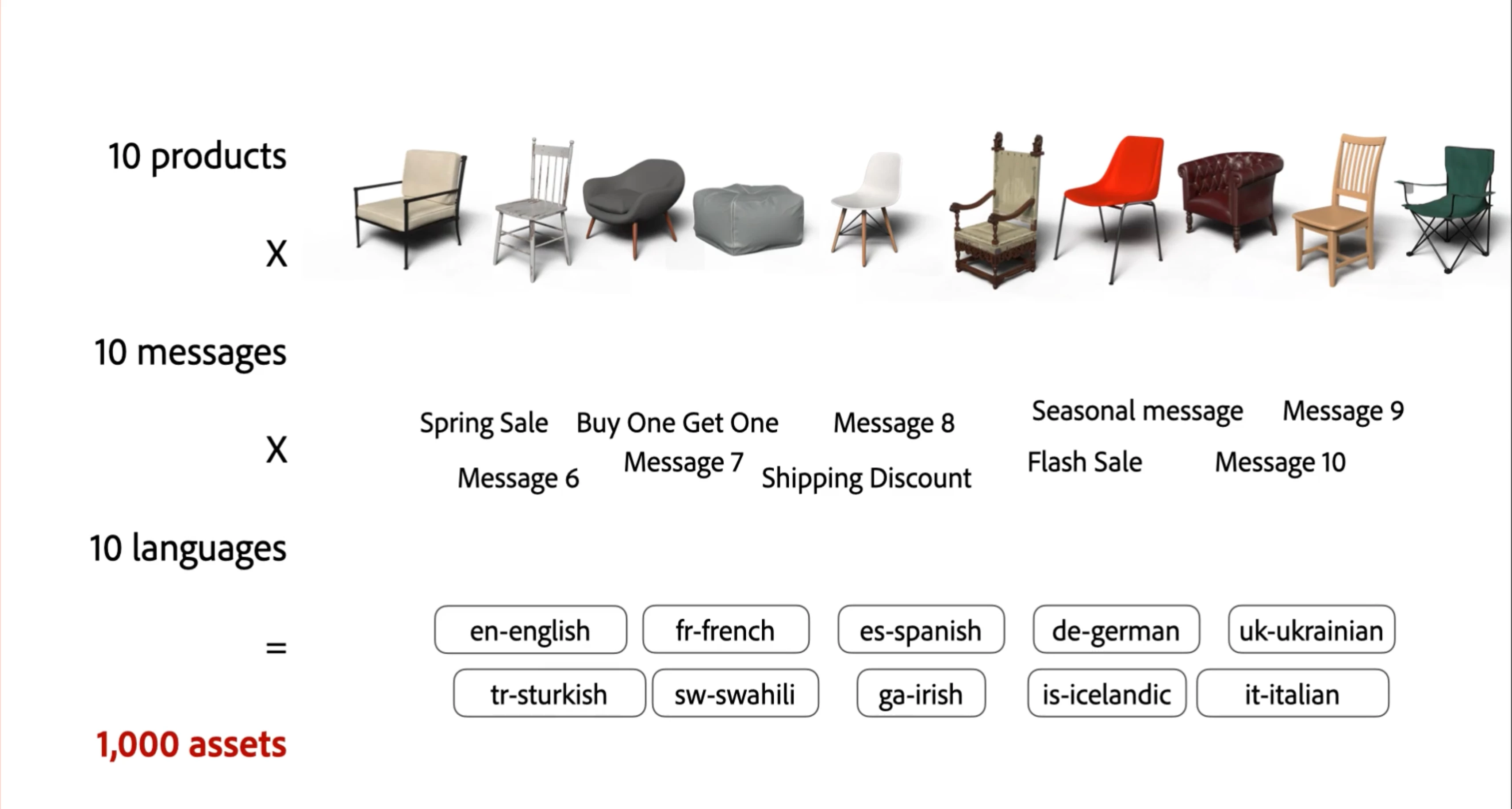- Design team creating individual assets for each variation
