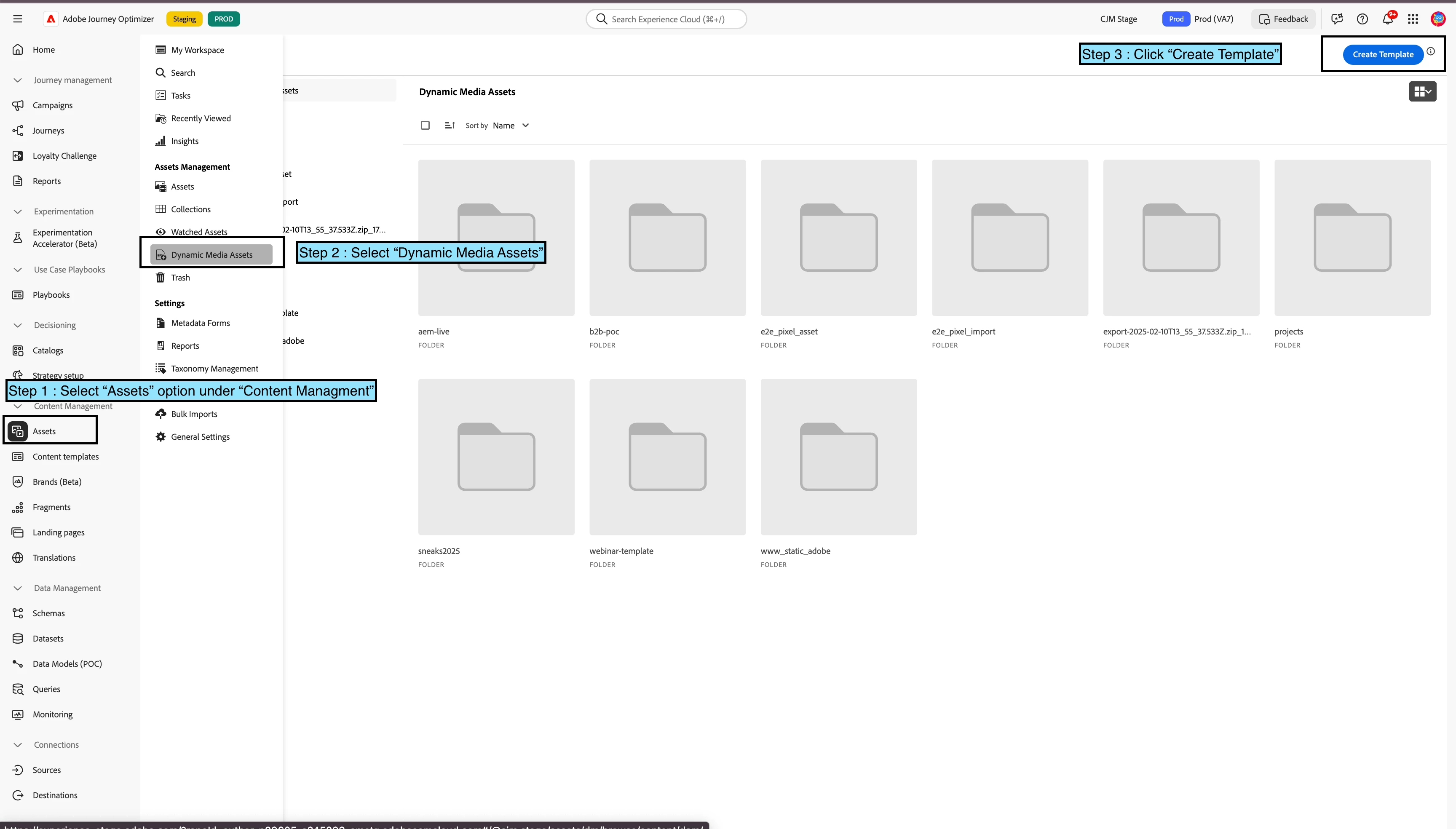 - Select "Dynamic Media Assets" from Assets navigation.