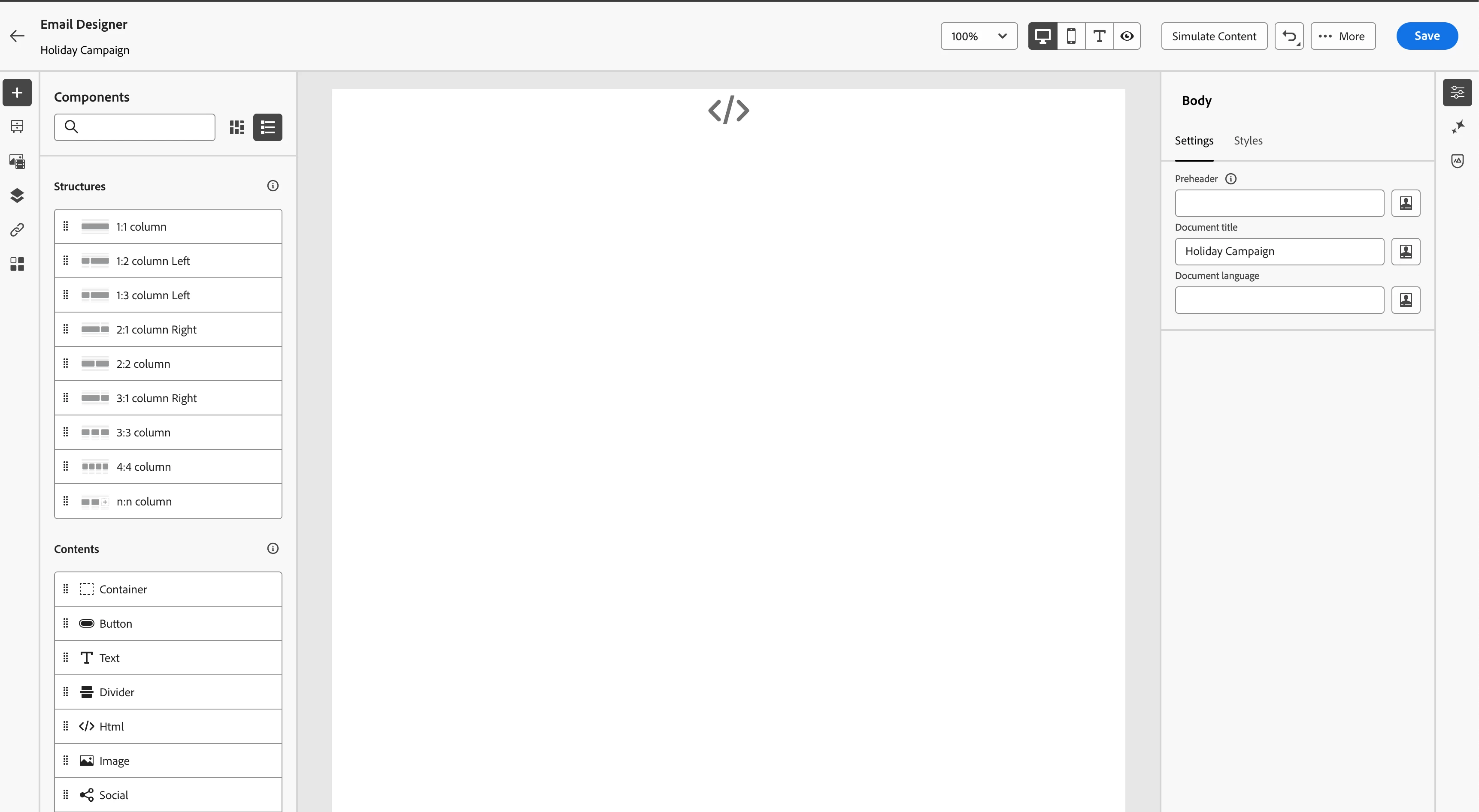 - Click on "Simulate content" option to show the preview of content. Preview content