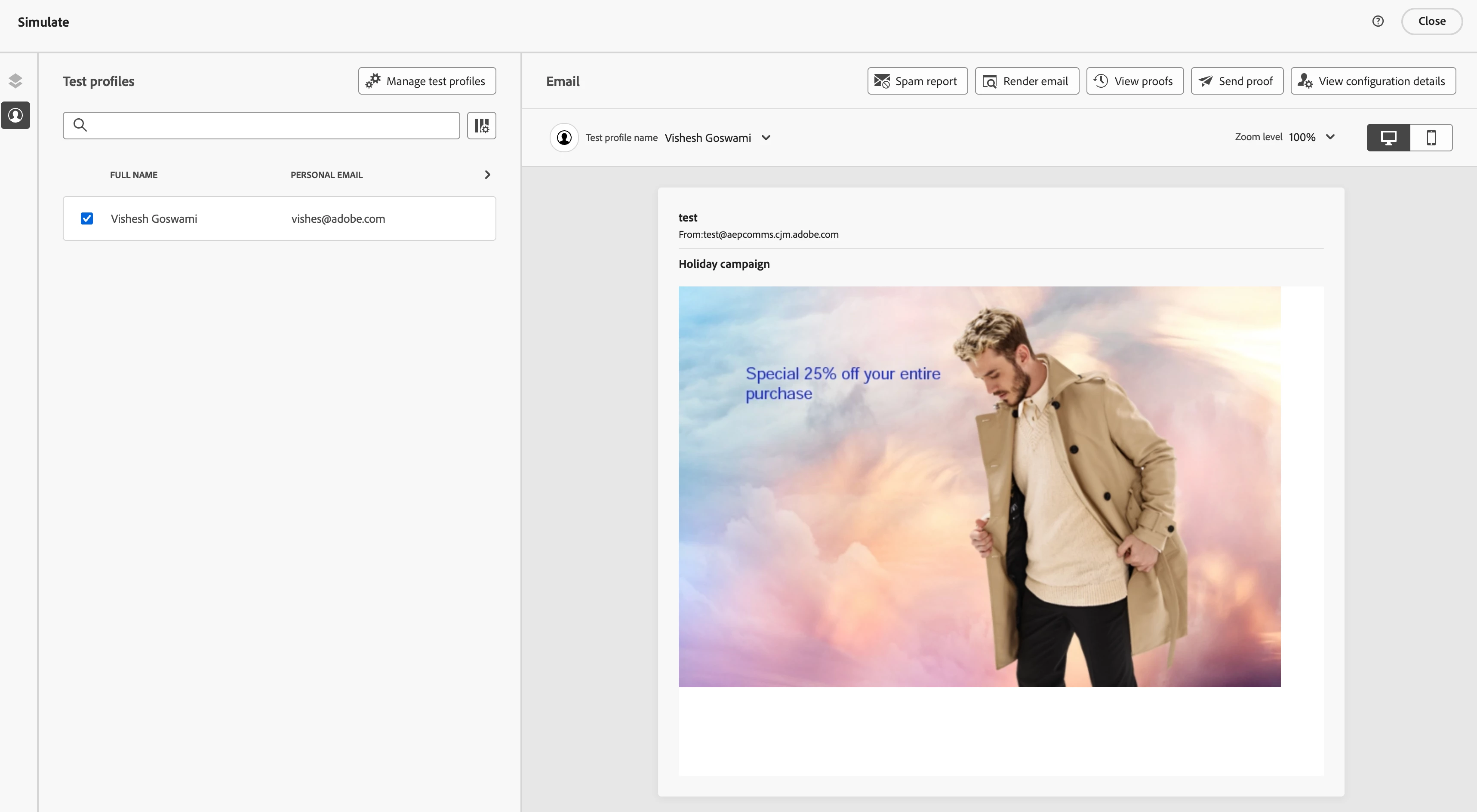 - Select the test profile to see the preview. Manage test profile