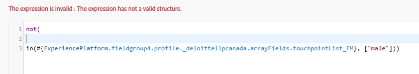 I am using "notin" function to exclude not needed data from array column but having errors.