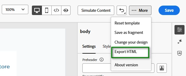 I have created numerous templates using AJO's Content Editor and now need to access the HTML code to begin troubleshooting sevreral rendering issues I've encountered. As an Email Deverloper, how can I extract the HTML code from an Adobe Journey Optimizer email created in the Content Editor?