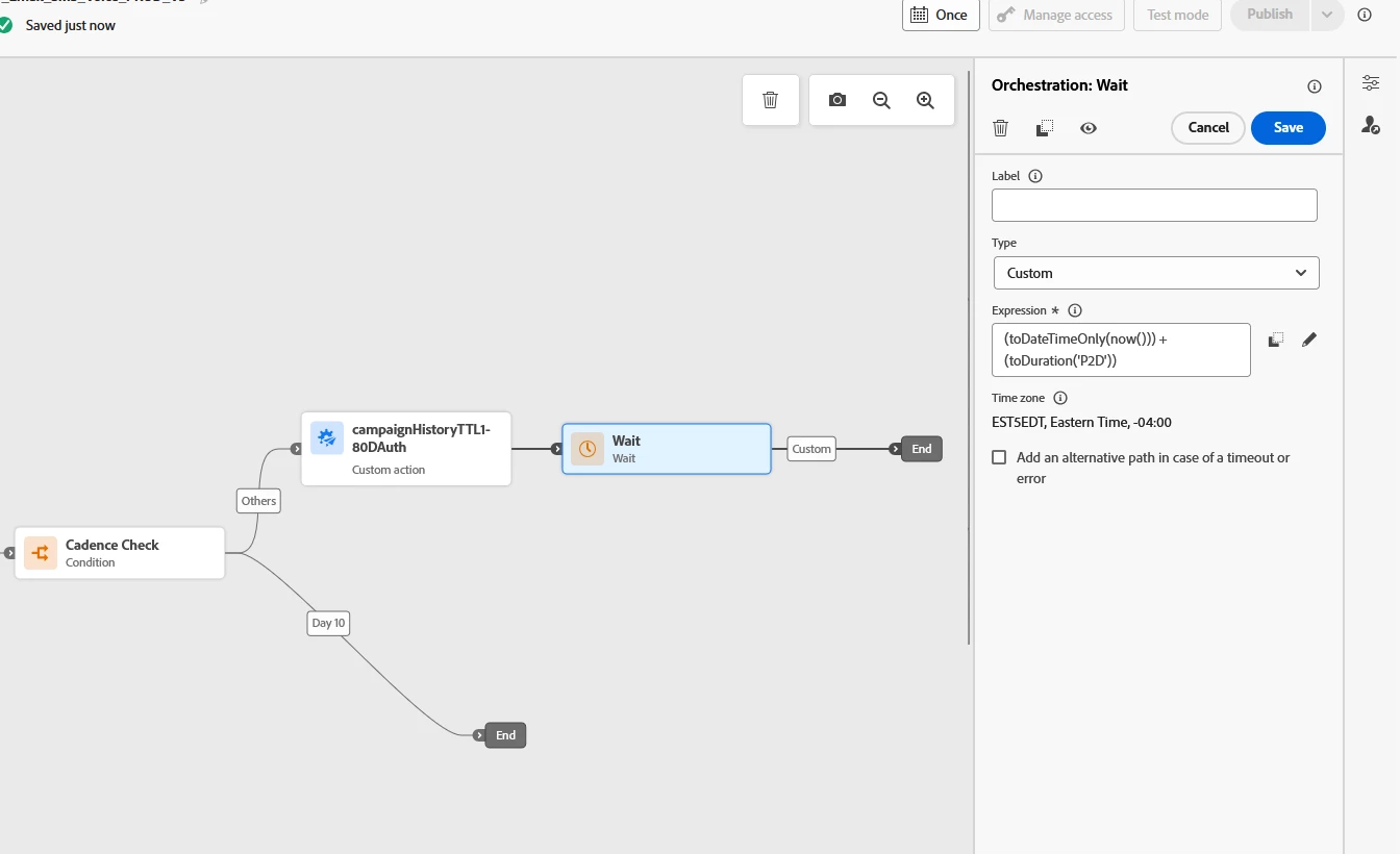 How to set up a custom Wait time in AJO. (2 days after purchase date)