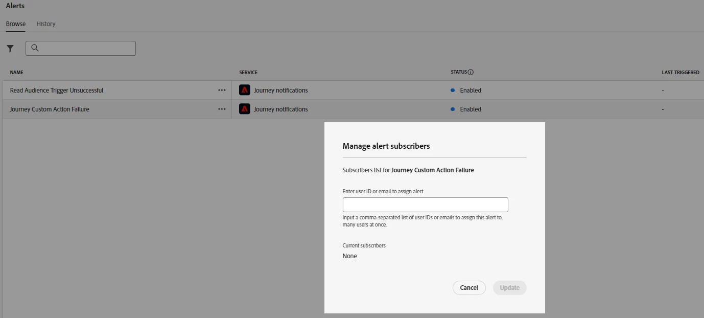 we are trying to get alerts for distribution List in AJO. How can we achieve that?
