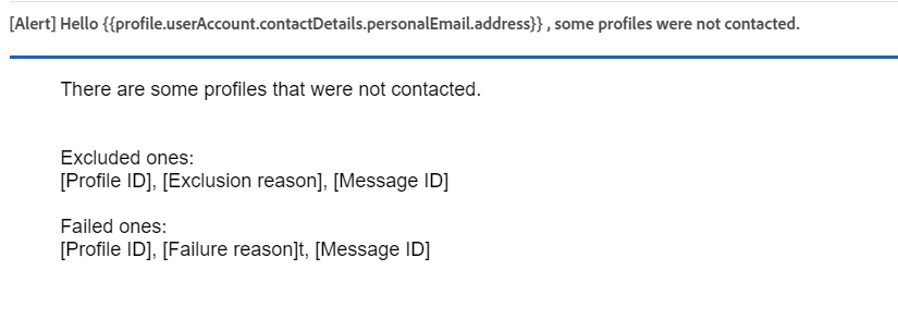 Since AJO does not provide a detailed Email Report but just aggregated results, I thought of creating a Journey to send myself a daily Alert containing the list of Profiles that were not contacted (excluded or failed).
