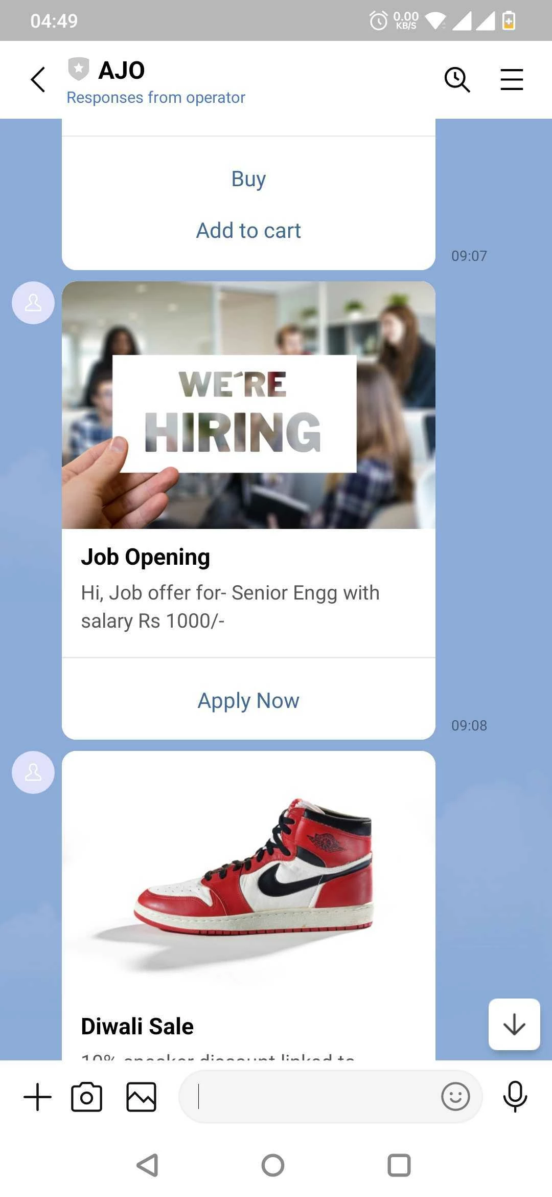 LINE isn’t just for festive campaigns like Diwali Sales—it can also be used for practical messages like job notifications. You can send text, stickers, images, videos, templates, and flex messages. This makes LINE a versatile native channel for all your messaging needs.