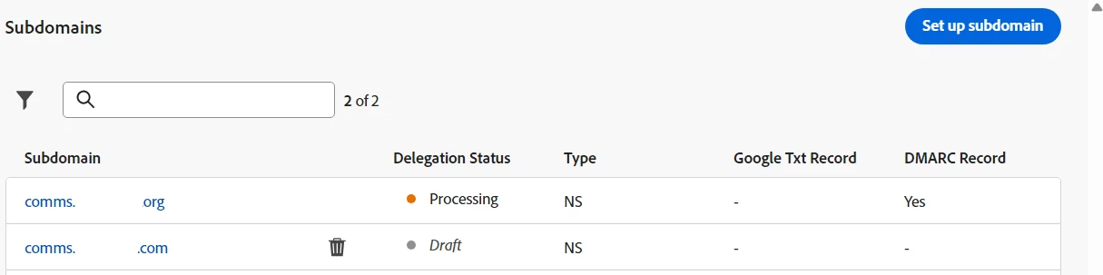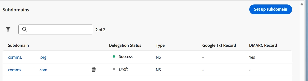 Note: If there's a requirement to adjust DMARC configurations following successful subdomain delegation, it's indeed possible to make the necessary modifications.