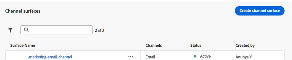 - Email Channel Surface Configurations: