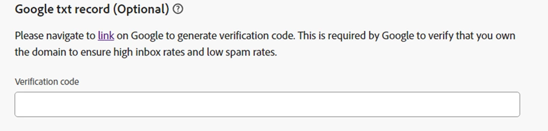 - Partner: Once the verification code is received, the Partner adds the Google TXT record in AJO and saves the configuration.