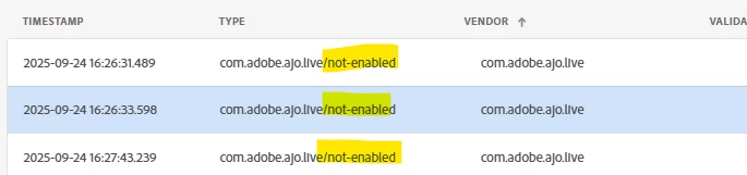 But I am seeing in assurance session that AJO is not enabled. App data is flowing in Analytics but its not getting recorded in AEP dataset. Can any suggest, what's causing issue.