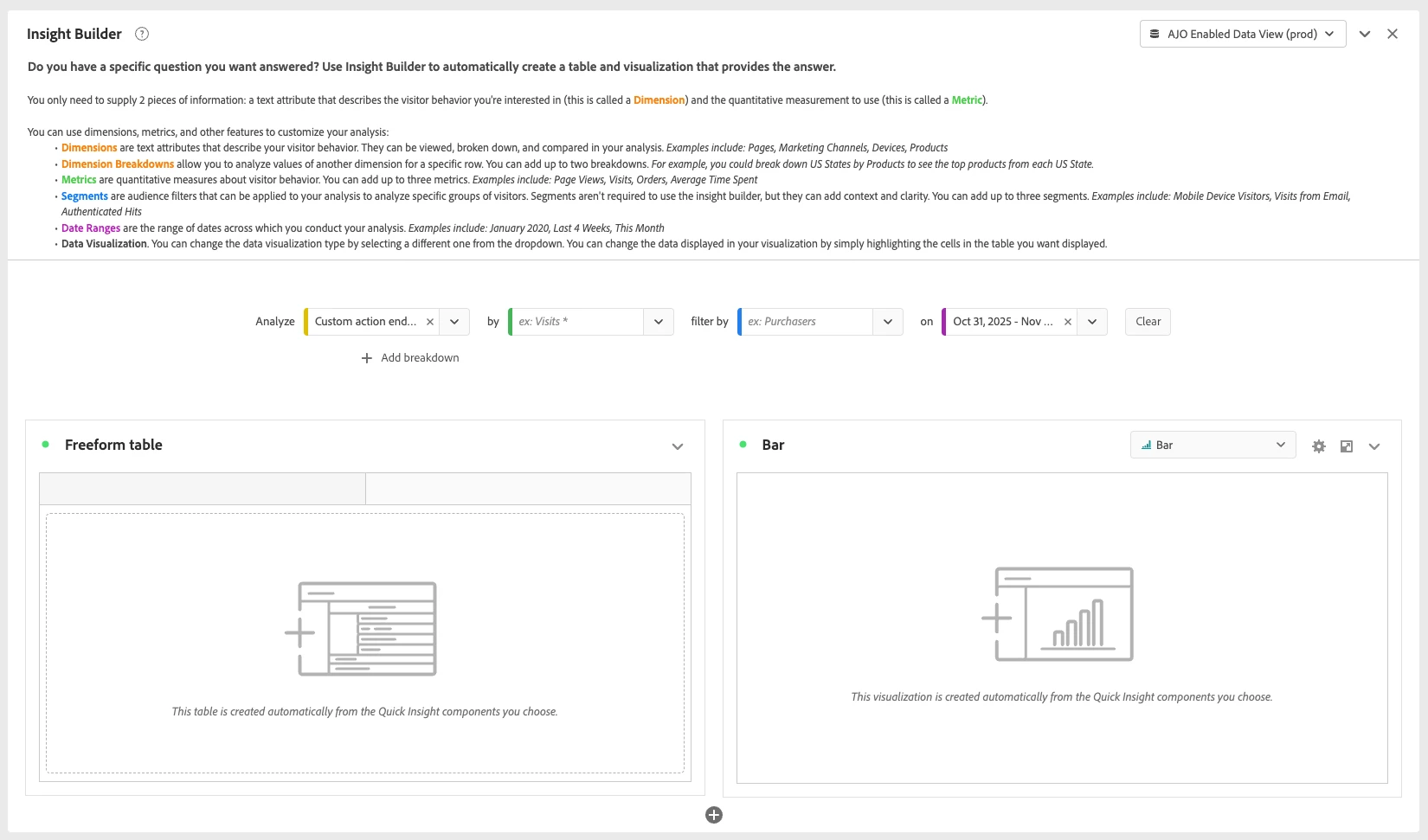 💡 This panel is designed to help users tailor their analysis, monitor performance across different dimensions, and maintain reliable integrations within their journeys.